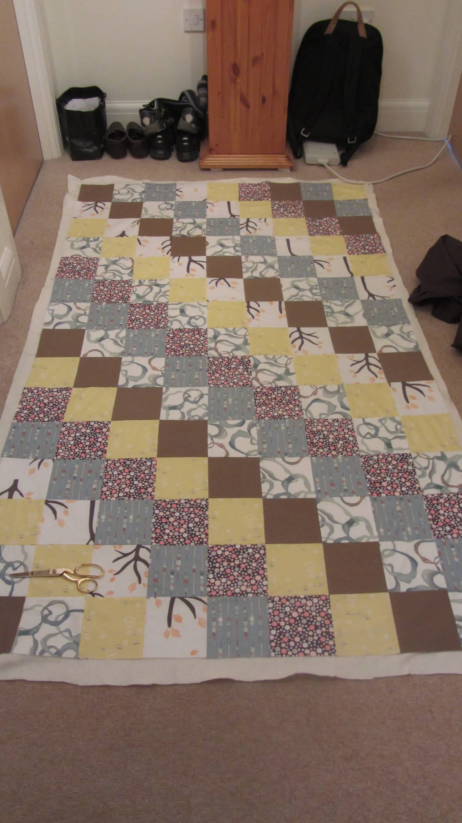 A couple of weeks ago I was racking my brains for ideas of a present for my mum for Mother’s day. Flowers are great but I wanted to give her something a more meaningful. In case you’re wondering, I’m ok to post this as my mum wouldn’t have a clue where to find my blog! The recent cold weather made a quilt seem the perfect gift and I immediately set about working on a design. I spent a couple of hours looking online for fabric as I wanted to base it around the colours of her bedroom. Here are three I settled on: