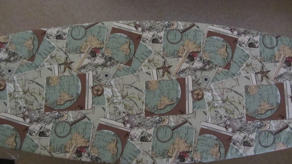 After all of the wonderful comments about the map fabric I bought in Birmingham, I thought I should step to it and replace the cover of our ironing board. Turns out the language on the fabric is German, amazing what you don't notice when you're so caught up with a fabric!