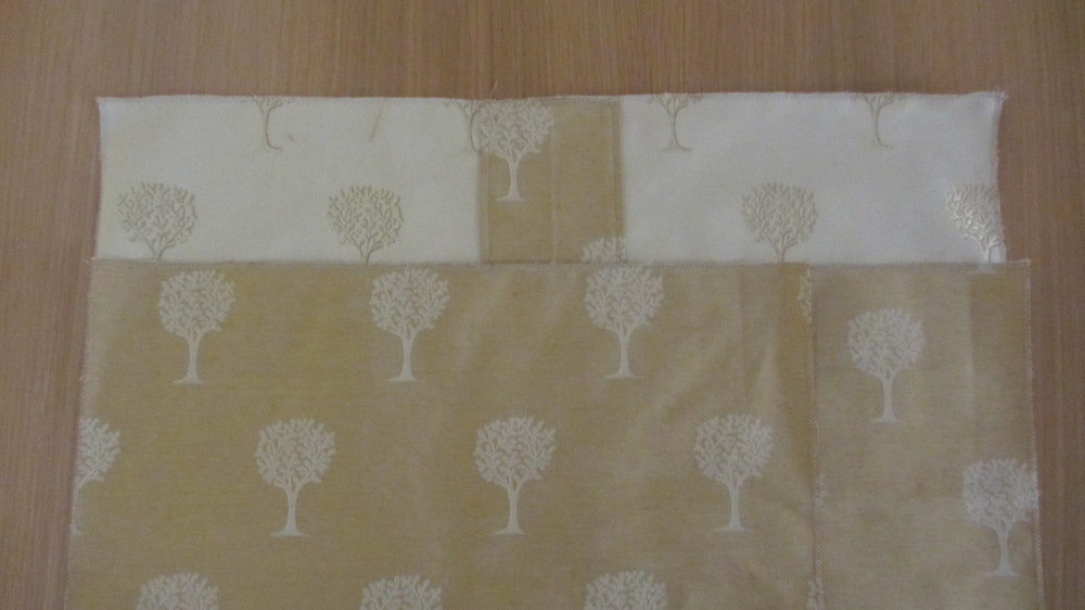 Pin one back piece to the front cover and then the other. They will overlap at the top and bottom. Stitch all the way around using a 1cm seam allowance.